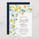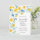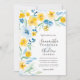 Um casamento floral amarelo-esguicho Elegante com flores rústicas, amarelas do país e azuis do estilo italiano, pintado à mão em aquarela. Um estilo mediterrânico rústico misturado com um moderno roteiro de fontes escovado pela mão.