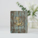 Convite casamento âncora de madeira azul da doca náutica