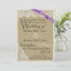 O antigo lugar branco vítreo sobre a aparência rústica de burlap está impresso neste convite não tão tradicional. Personalize com seu próprio texto e detalhes. Perfeito para um tema de campo vintage ou casamento de estilo rústico. Todas as partes desses convites são impressas. Não há um local real ou uma pá está conectada.