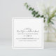 Este convite de casamento quadrado minimalista é perfeito para um casamento simples. A design romântica moderna apresenta a tipografia clássica, em preto e branco, emparelhada com uma caligrafia rústica, mas elegante, com estilo voltado para a mão. Personalizável em qualquer cor. Mantenha o design simples e elegante, como está, ou personalize-o adicionando seus próprios gráficos e trabalhos de arte.