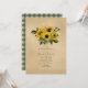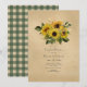 Convite de chá de panela de casal country rústico de outono - outono apresentando girassóis e uma toalha de mesa xadrez verde gráfico no verso.