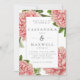 Convite Casamento Aquarela de Peônias Botânicas Rosa Vinta
