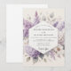 Este design elegante apresenta uma bela composição aquarela de lilases em flor. Flores roxas delicadas e folhas cinza-verdes suaves criam uma atmosfera romântica e etérea. O estilo suave e pictórico dá à obra de arte um sentimento gentil e sofisticado, perfeito para uma união de primavera ou verão.