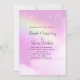 Um convite de casamento com um belo fundo. Um céu cor-de-rosa pastel com nuvens fofas e um arco-íris de cor amarelo limão. Design mágico e caprichoso.