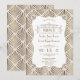 Desenho Glamouroso Art Déco no estilo Great Gatsby. Possui estilo Art Déco, forma e ornamentos em folha de ouro falso em um fundo com padrão Art Déco branco dourado falso. Use a ferramenta Personalizar para adicionar suas informações. Para itens correspondentes, visite minha Coleção Art Déco Estilo Gatsby Preto/Branco Anos 20.