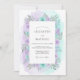 As lavagens de aquarela de lavanda e hortelã criam uma atmosfera sonhadora para este design. Rosas roxas suaves e flores azul-verde estão entrelaçadas com folhas delicadas de eucalipto e folhagens. Esta arranjo floral artístico fornece uma estética etérea e romântica adequada para um tema fresco de primavera.