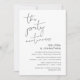 Este é o convite de casamento para uma festa de casamento às escuras, com design de letra minimalista / minimalismo (A Festa Continua)