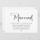 Cartão de convite de casamento com tema de roteiro minimalista moderno (acabamos de nos casar). É perfeito para o seu casamento / festa de celebração pós-casamento. Adicione seus detalhes em fonte / letra preta correspondente.