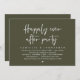 Cartão de convite de casamento com tema verde olive moderno (Festa Eterna Feliz). É perfeito para a sua recepção de casamento às escuras / festa de celebração pós-casamento. Adicione os seus detalhes na fonte preta correspondente.