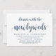 Convite de casamento às escuras com tema em azul marinho elegante e moderno (Jantar Com os Recém-Casados). É perfeito para o seu casamento às escuras informal à beira do lago, jantar, dança e festa.