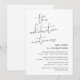 Este é o cartão de convite para a festa de casamento às pressas, com design de letra minimalista / minimalismo (A Celebração Continua)