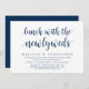 Roteiro Moderno em tema Azul Naval Clássico, cartão de convite de casamento às pressas (Almoço Com os Recém-Casados). É perfeito para a sua celebração casual de casamento às pressas à beira do lago.