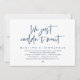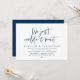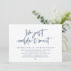 Cartão de convite de casamento às pressas com tema Moderno em azul marinho (simplesmente não conseguimos esperar). É perfeito para a recepção de casamento às pressas ou festa de celebração pós-casamento. Adicione seus detalhes em fonte / letra preta correspondente.