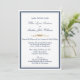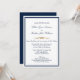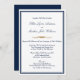 Um Convite para Casamento Azul, Branco e Dourado, Marinho Elegante, projetado com texto e borda de Marinho; com sotaque decorativo dourado, em fundo branco. O texto do convite inclui: Nomes de cheio de noiva e de grupo, Data de casamento, Hora, Local e Detalhes de recepção. O verso inclui os nomes e a data de casamento da noiva e do noivo com um sotaque decorativo dourado. Para personalizar, basta inserir seus detalhes em nosso modelo fácil, substituindo o texto de exemplo. Certifique-se de visualizar a coleção completa para placas e acessórios correspondentes.
