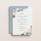 Floral de jardim botânico de cor aquática elegante, convite para casamento. Delicar os florais em azul claro, esbranquiçado e branco. A parte traseira da placa apresenta cores azuis claras de coordenação sólidas. Design de tipografia moderna mistura de caligrafia e tipo ousado em cinzas.