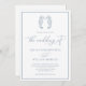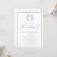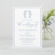 Este clássico design de convite para casamento branco e azul empoeirado é perfeito para casamentos costeiros e náuticos e de destino de praia, com dois cavalos-marinhos bonitos se beijando no topo, uma caligrafia elegante com roteiro e um quadro ao redor da borda.