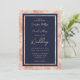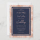 Convites de casamento azuis e rosa com marinho com uma letra moderna. Personalizar facilmente online.