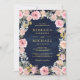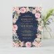 Convite Casamento Azul com Marinho de Código QR Floral, ro