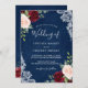 Convite Casamento Azul com Marinho Floral Blush Blush Blus