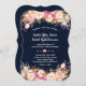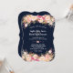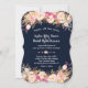 Convite Casamento Azul com Marinho Floral Cor-de-Rosa Mode
