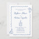 A Mão Espanhola Desenhou O Convite Ilustrado De Casamento Azul De Cobalto... Um design de rabiscar ondulado desenhado à mão borda seu texto de convite em roteiro manuscrito e tipografia sans serif, dando ao convite um olhar exclusivo para um convite de casamento de um tipo. As ilustrações de arte feitas à mão branca refletem o propósito de cada elemento de papelaria em nossa suíte de casamento tradicional. Por trás do moderno convite duplo, está o seu website de casamento Código QR, onde os convidados podem RSVP e ver todos os detalhes normalmente enviados em um pacote de casamento. Todo texto pode ser facilmente revisado com suas próprias informações sobre o modelo de personalização.