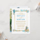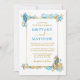 O Convite para Casamento Azul Costeiro de Coral Costeiro, Elegante moderno, inclui conchas marinhas, corais, cavalos marinhos e estrelas-do-mar numa estrutura de ouro. Foto de volta.