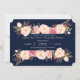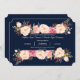 Convite Casamento Azul de Marinho de Quadro Floral Rosa En