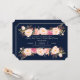 Design de cartão único e elegante, com rosas e peônias pintadas cor-de-rosa, pinceladas em um fundo azul de marinho rico (você pode alterá-lo, mas precisa mudar a cor do texto para ajustado o plano de fundo escolhido. Na parte de trás, uma bela buquê. Use a ferramenta Personalizar para adicionar suas informações, alterar fontes, cores. Visite, por favor, minha Coleção Floral de Blush Moderno, para ver os itens correspondentes.