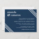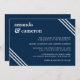 Um convite de casamento simples e elegante com apelo minimalista em azul marinho com cantos brancos triplos e texto branco. Os nomes da noiva e do noivo aparecem com destaque no canto superior esquerdo do convite com os detalhes do casamento em um layout moderno justificado pela direita. Este convite saboroso é uma escolha maravilhosa para casamentos em qualquer estação do ano ou em qualquer época do dia. O esquema de cores luxuoso dá o tom para uma adorável celebração de casamento. Você pode alterar a cor deste convite para corresponder ao esquema de cor do seu casamento escolhendo "clicar para personalizar mais" na parte inferior do modelo de texto e selecionando uma cor de fundo diferente.