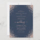 Convite de casamento marinho azul e rosa dourado personalizado com confete rosa dourado.