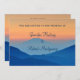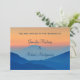 Um convite de casamento casual na montanha cênica. Um convite de casamento simples, mas elegante no estilo do quintal. Inclui um local para inserir informações de RSVP para simplicidade e conveniência. Uma abstrato de criação de uma paisagem enevoada do pôr do sol de montanha criando um efeito de ressonância sonhador. As colinas e vales são cor azul profunda com uma montanha central de aparência nebulosa grande no fundo. O céu está cheio de uma atmosfera turva e nebulosa cor de laranja. O processamento feito a esta foto da noite dá a ela uma sensação artística, pintada de sonho.