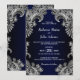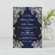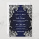 Convite Casamento Azul de rendas Brancas Elegante