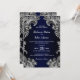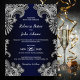 Convide seus amigos e entes queridos para o seu casamento com este elegante convite de casamento preto e azul.