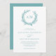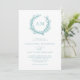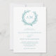 Perfeito para a praia e casamentos náuticos temáticos, uma coral enrola as iniciais do monograma da noiva e do noivo no topo desse elegante e mínimo convite à costa de vidro branco e azul marinho. O dorso é uma cor azul de vidro marinho sólido.