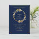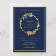 Convite Casamento Azul do Marinho de Folhagem do Ouro Eleg
