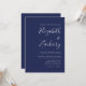 Este simples convite de casamento moderno apresenta um texto branco sobre um fundo azul marinho. Adicione os nomes da noiva e do noivo na caligrafia de escrita manual do na moda e os detalhes na fonte sans serif. O reverso é uma sombra correspondente de azul marinho sólido.