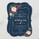 Convite Casamento Azul Dourado Floral Rosa Brilhante