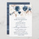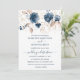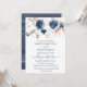 Cartão plano Elegante de Convite para Casamento, com ilustração das flores azul e dourada do marinho.