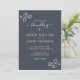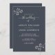 Convite Casamento Azul Escuro com Folhagem de Marfim