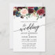 Convocação para Casamento Floral Azul da Burgundy, Elegante Moderno