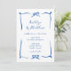 Convite Casamento Azul Francês de Fita Desenhada à Mão