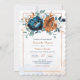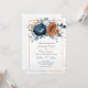 Convite de Casamento Azul Marinho e Laranja Queimada, Casamento Floral Terracota e Azul Marinho, Temas de Convites Florais Laranja, Azul Laranja Queimada