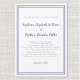 O Convite Elegante e Trendy Wedding apresenta um simples design minimalista contemporâneo com uma borda dupla em cor azul-piscadela em um fundo branco nítido. A formulação tradicional proporciona sofisticação eterno mas moderna. Personalize o design de casamento com seus detalhes em letras azuis e guião. A parte traseira da placa corresponde a azul estável.