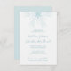 Este design minimalista de casamento com flocos de neve faz parte da nossa suíte de Casamentos Wonderland de inverno. Convites combinados, cartões de recepção e etiquetas de favorecimento estão disponíveis na loja em duas opções de cores — cinza e azul gelado.