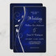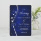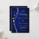 Este belo convite de casamento em tons de prata e azul real dará um sentido de elegância ao seu casamento! A frente esquerda tem uma rodosa prateada adornada com algumas folhas. Seu texto de casamento está em prata à direita da imagem. Tudo é colocado sobre um impressionante fundo azul gradiente que parece quase brilhar. A parte de trás do convite tem o mesmo plano de fundo azul real. Elegante para qualquer estação! Há placas RSVP correspondentes em nossa loja.