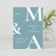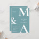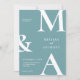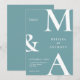 Convite de Casamento Azul Turquesa Minimalista Moderno. Apresenta tipografia de monograma em negrito e design gráfico minimalista. Personalize o texto com todos os detalhes do seu dia especial.