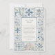 Celebre seu casamento de destino em estilo de eterno com este convite de casamento de Lisboa pintado à mão. A design apresenta um emblema amarelo emblemático que atravessa os charmosos telhados azuis e ruas enroladas da capital portuguesa. Enquadrada por intrincados azulejos azulejo florais e ornamentais em tons perversos de azul de cobalto, verde-oliva e marfim cremoso, o trabalho de arte evoca o espírito romântico de Lisboa. A correspondência inclui espaço para detalhes extras do casamento, mantendo a estética coesa. Perfeito para casais que abrigam seu evento em Lisboa ou inspirado pela cultura portuguesa, este convite combina elegância com talento artístico.