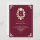 Elevem a sua celebração com este convite de casamento barroco e burguês com um quadro de colheita de ornamentado com detalhes elegantes do monograma. Perfeito para casais planejando um tema romântico, de luxo ou de casamento formal, este convite para eternos dá o tom de um evento sofisticado. O rico fundo burgundy e o ouro metálico florescem destacam seus nomes e detalhes de casamento lindamente. Um verso comum opcional permite espaço para texto ou fotos extras. Ideal para o outono e casamentos no inverno, eventos em tempo negro e celebrações glamourosas.