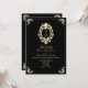 Faça uma declaração com este convite de casamento barroco preto e dourado apresentando uma moldura vintage ornamentada e um centro de monograma elegante. Concebido para casais que organizam uma celebração de casamento luxuosa, de gala ou formal, este convite atemporal define o tom perfeito. O dramático fundo preto destaca os floreios dourados com aparência metálica e os detalhes do seu casamento em uma fonte de letra elegante. O verso em branco opcional permite uma redação adicional ou fotos. Perfeito para casamentos de inverno glamorosos, celebrações de Ano Novo ou cerimônias noturnas elegantes.