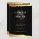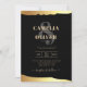 Apresentamos um design de casamento luxuoso com estampa em folha dourada e preta (apenas visual, não é folha verdadeira), perfeito para adicionar um toque de elegância ao seu dia especial. Este evento de casamento black tie, tema formal e design muito glamoroso faz parte de uma coleção coordenada. A coleção de casamento preto e dourado inclui itens como cartões de RSVP, avisos de "salve a data", convites, placas de boas-vindas, adesivos, guardanapos, programas, cartões de número de mesa, sacos de lembrancinhas, menus e rótulos de garrafa de vinho, além de uma variedade de tipos de cartões e papéis para se adequar a qualquer orçamento.
